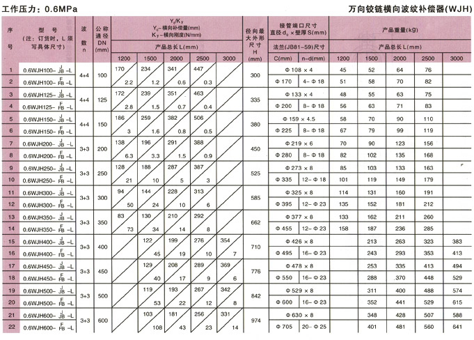 萬(wàn)向鉸鏈橫向波紋補(bǔ)償器(WJH)產(chǎn)品參數(shù)1
